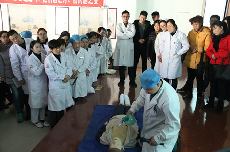 2017年3月2日(昨日)下午苏州东吴中西医结合医院全体医护人员在院长楼建鹤、业务院长曾志贤、麻醉科主任徐长贵等人的带领下在五楼国学馆开展了心肺复苏(CPR)理论技能与实践操作的培训。
