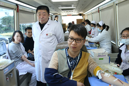 献血活动的现场氛围是轻松和愉快的,大家有序的进行填表、体检、献血。他们中很多是在工作的间隙中匆匆赶来献血,他们想用这种方式为社会贡献一点力量,为处在危难中的人增添一份希望。