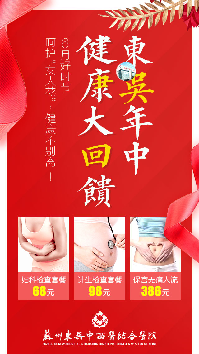 现在很多女性常常因为工作繁忙的缘故而忽略掉了自己的健康。妇科专家指出:女性需定期体检才能远离妇科疾病。针对苏城女性不同的健康需求,苏州东吴医院妇科特别推出特价体检套餐,希望将这一份温暖带到社会的每个角落,留在每个人的心里。