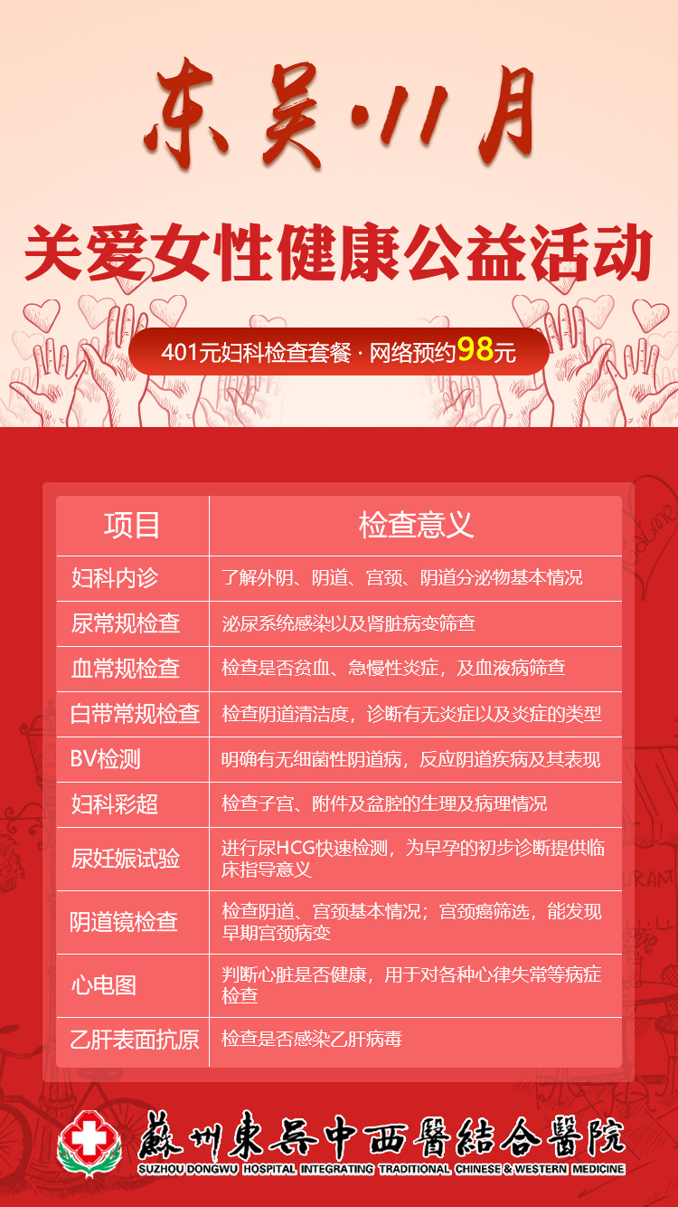 东吴11月惠民体检 98元妇科检查抵御寒冬